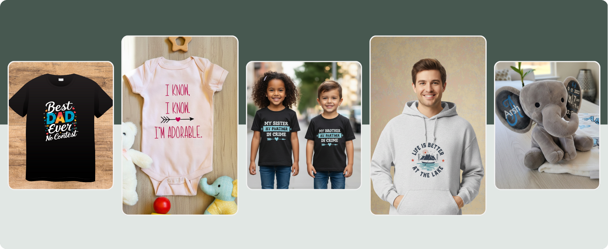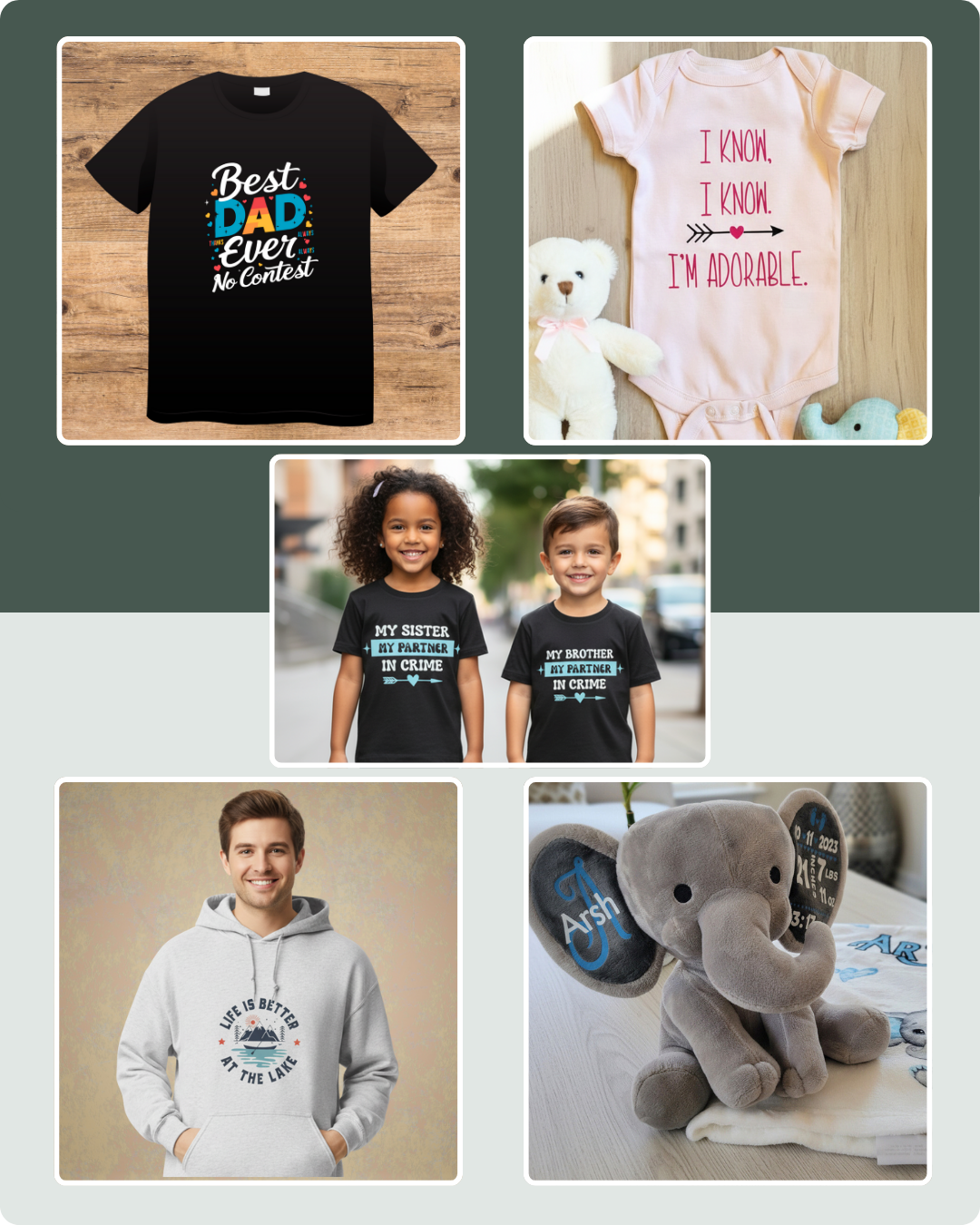 Custom-made products crafted in-house to reflect your unique style. From apparel and drinkware to thoughtful gifts and promotional products — every piece is personalized with love and care.